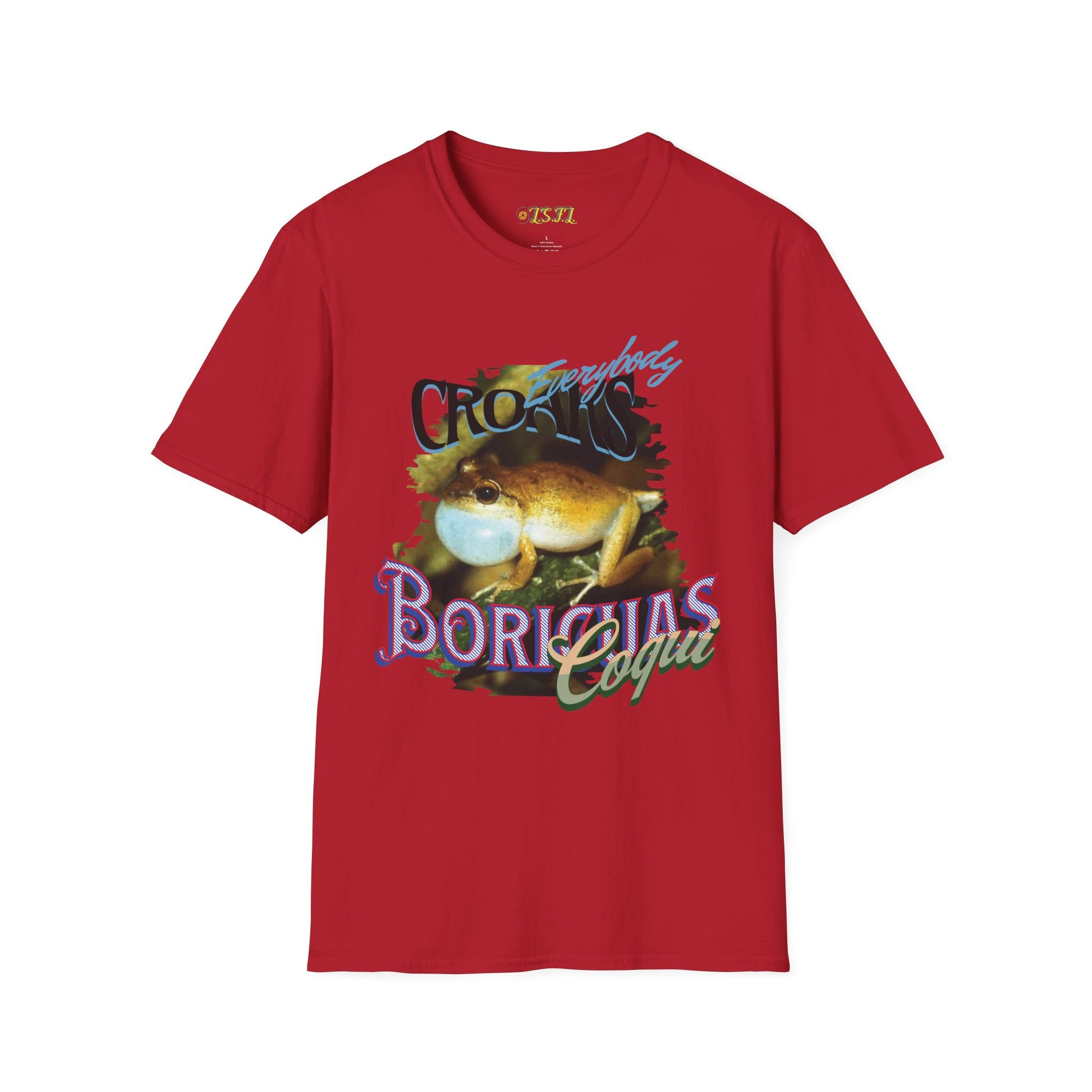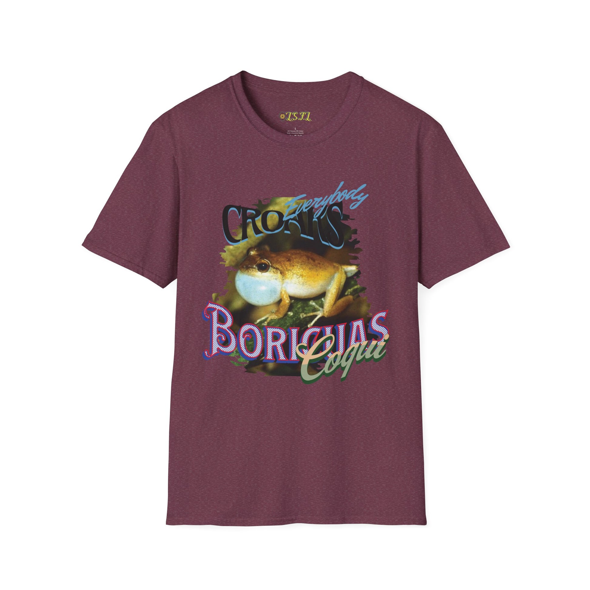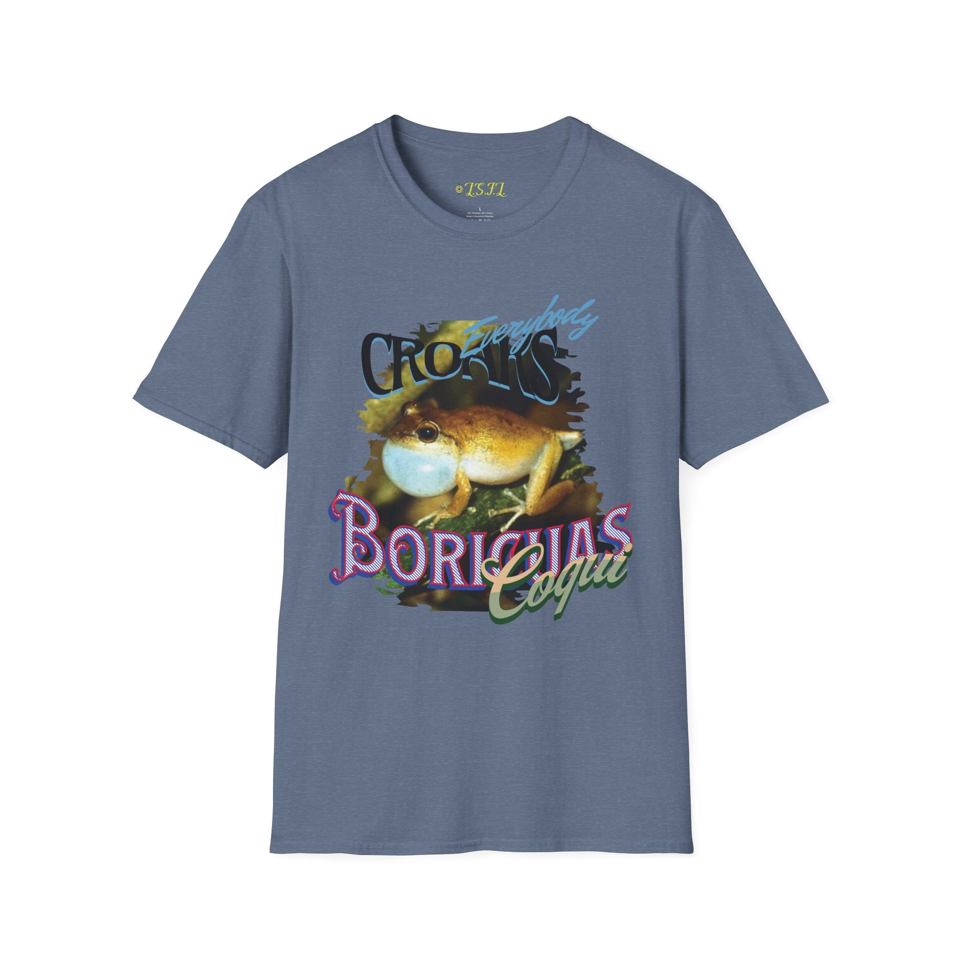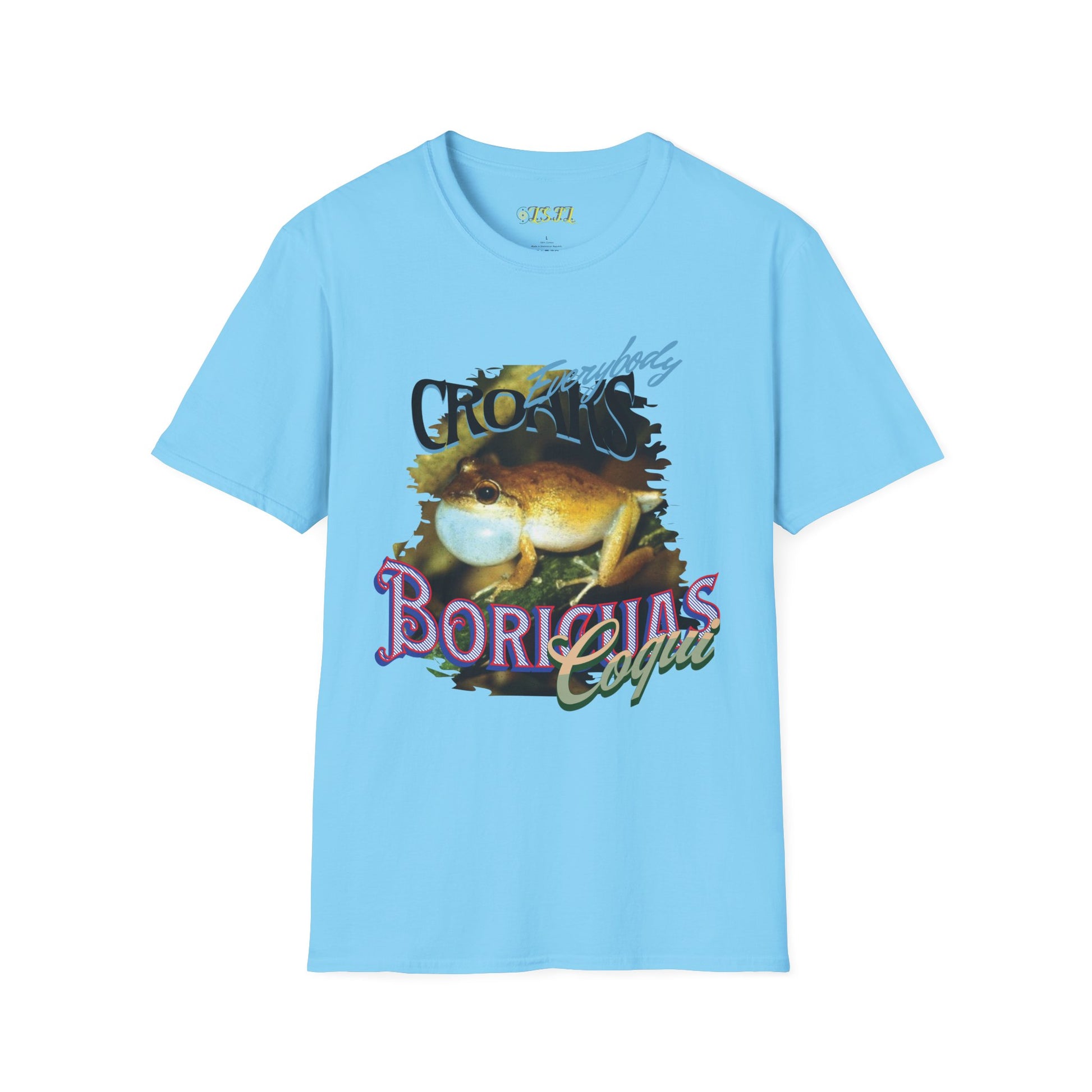 The Everybody Croaks Boricuas Coqui T-Shirt exudes a playful and unique vibe, perfect for those who appreciate Boricua culture. This soft style unisex t-shirt is versatile and comfortable, making it a great addition to anyone's wardrobe. Ideal for Boricua Americans or those celebrating Boricua heritage on holidays like National Puerto Rican Day Parade.