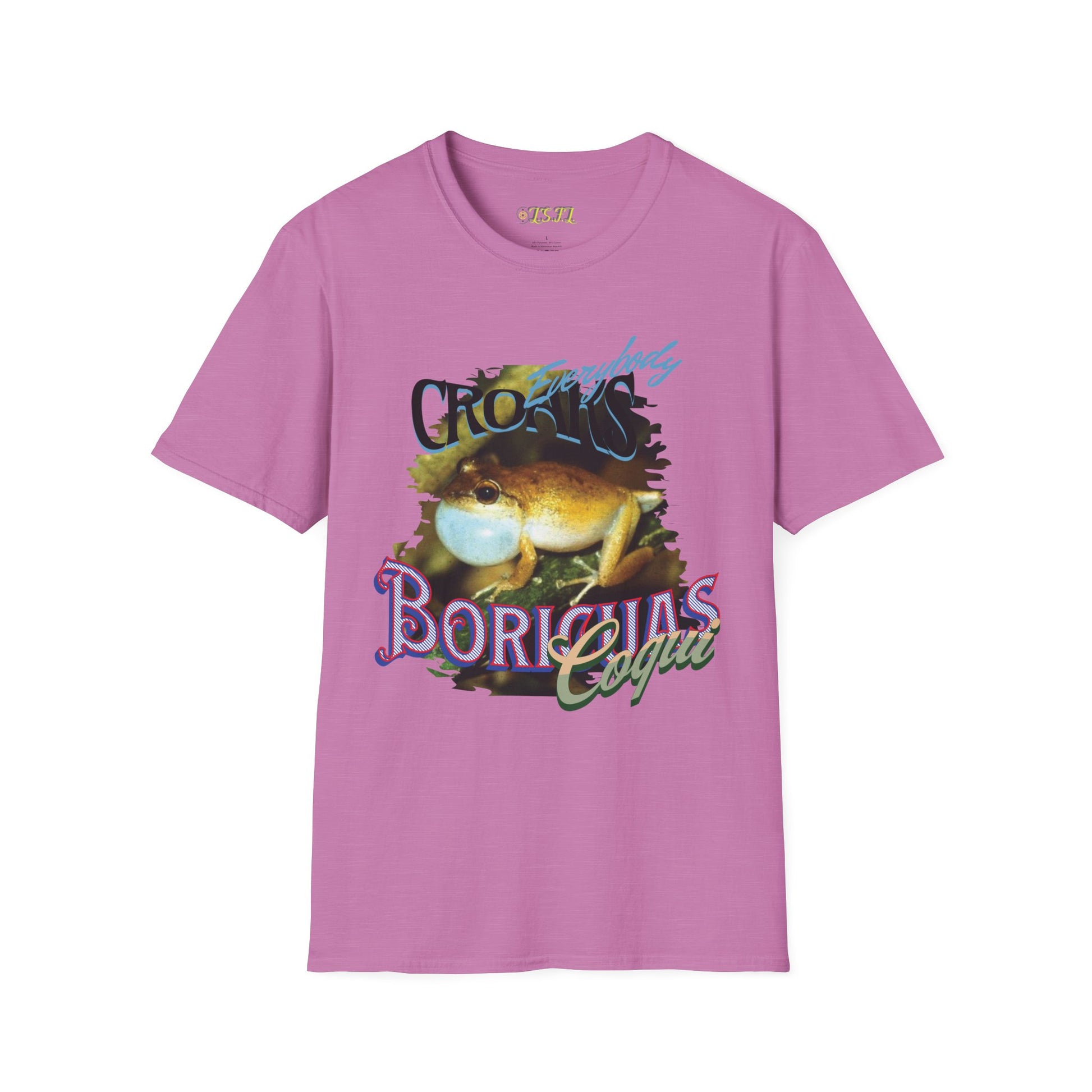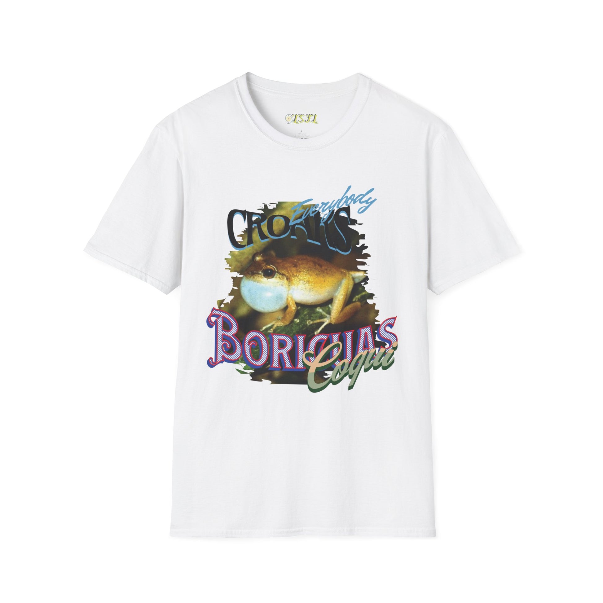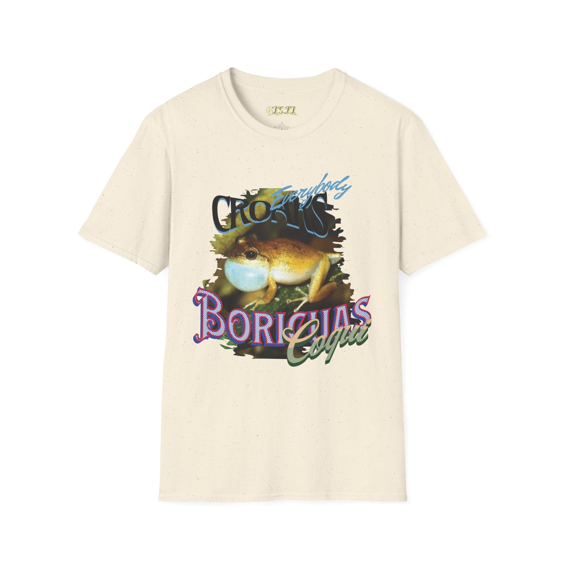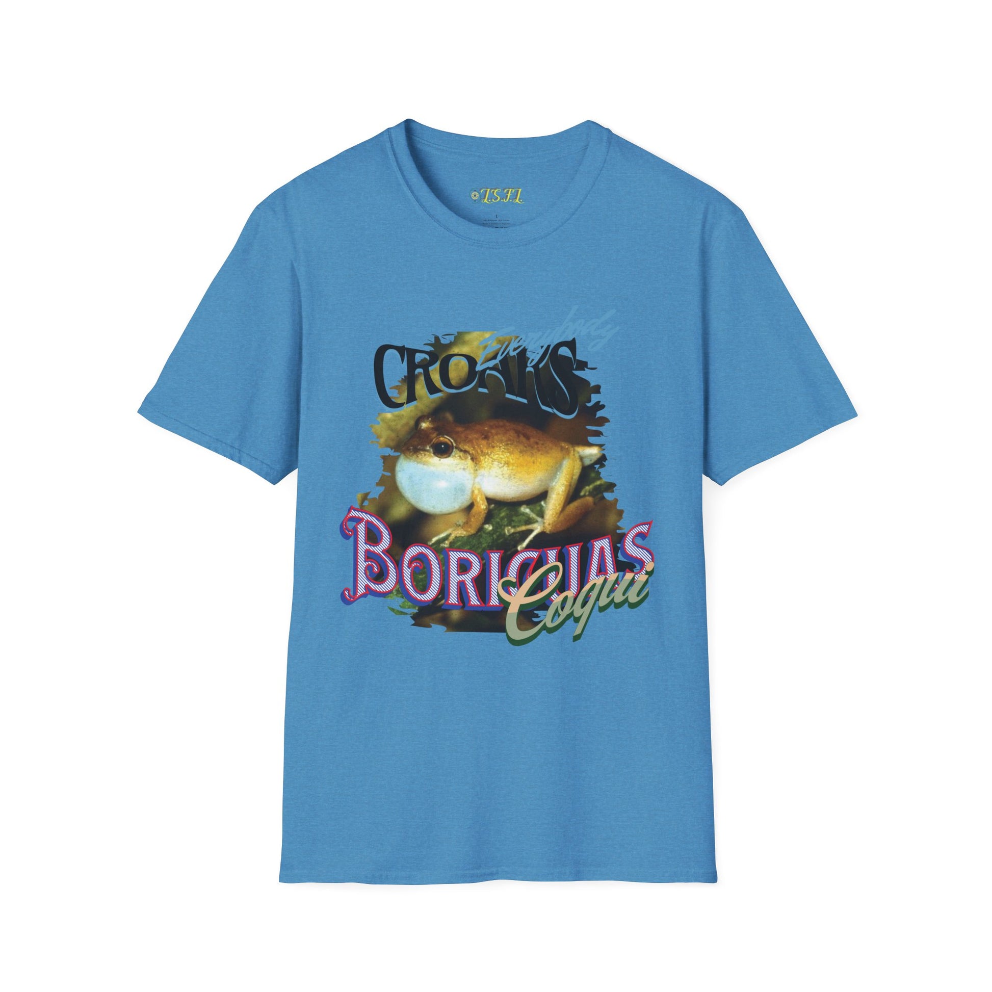 The Everybody Croaks Boricuas Coqui T-Shirt exudes a playful and unique vibe, perfect for those who appreciate Boricua culture. This soft style unisex t-shirt is versatile and comfortable, making it a great addition to anyone's wardrobe. Ideal for Boricua Americans or those celebrating Boricua heritage on holidays like National Puerto Rican Day Parade.