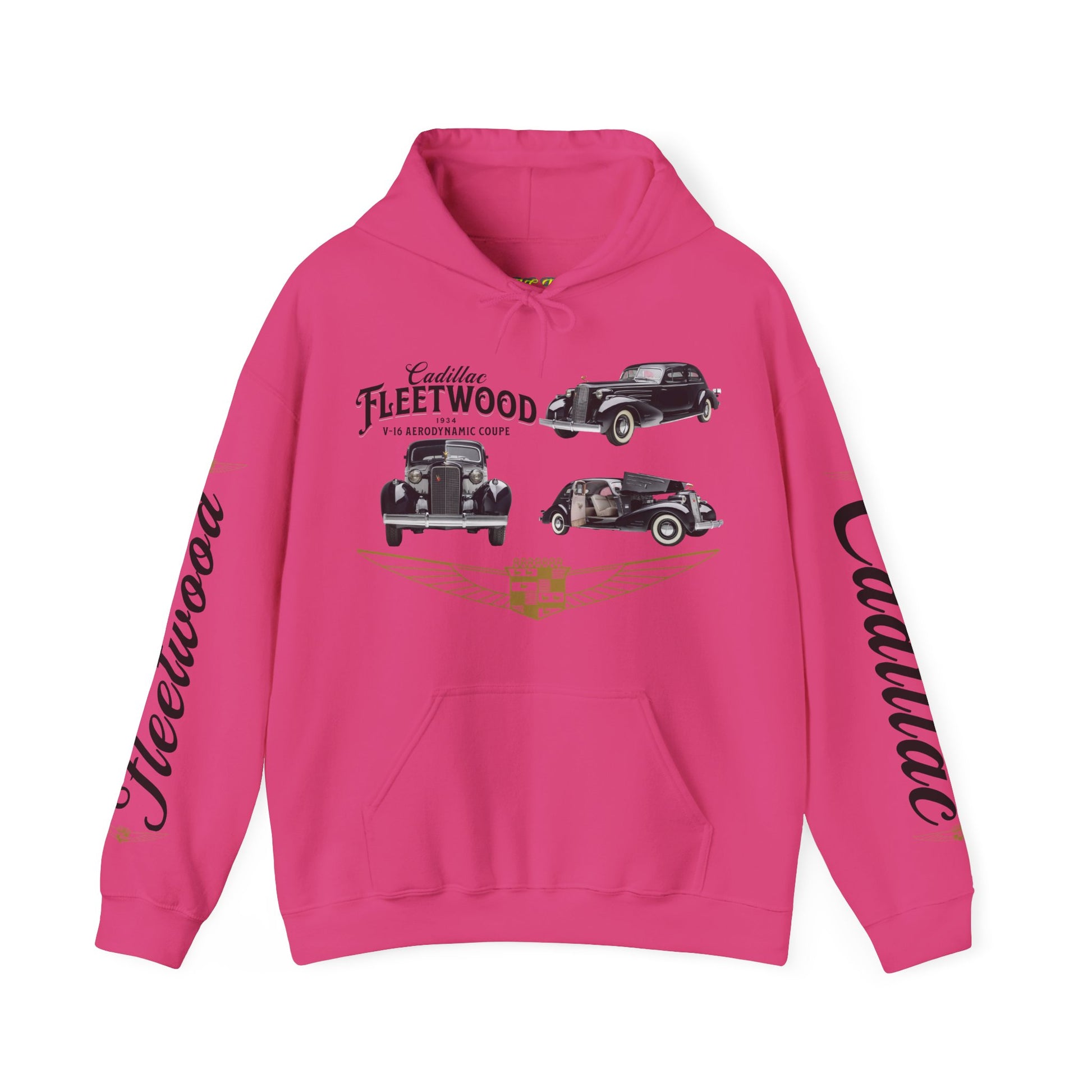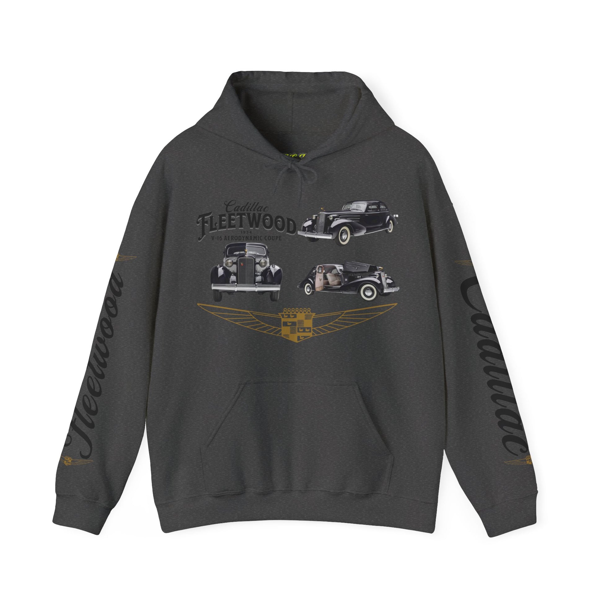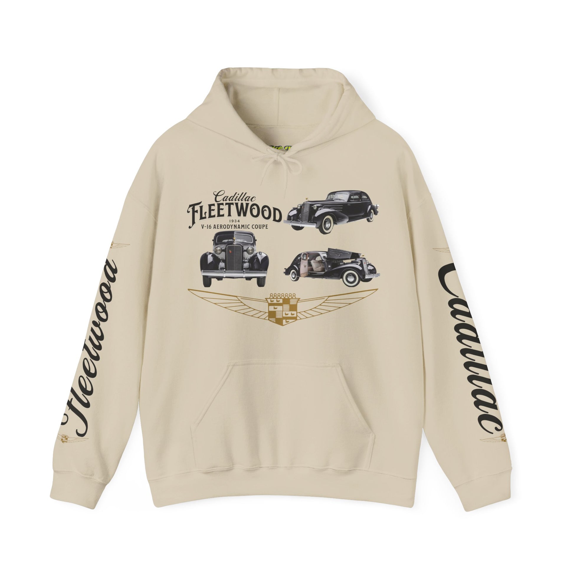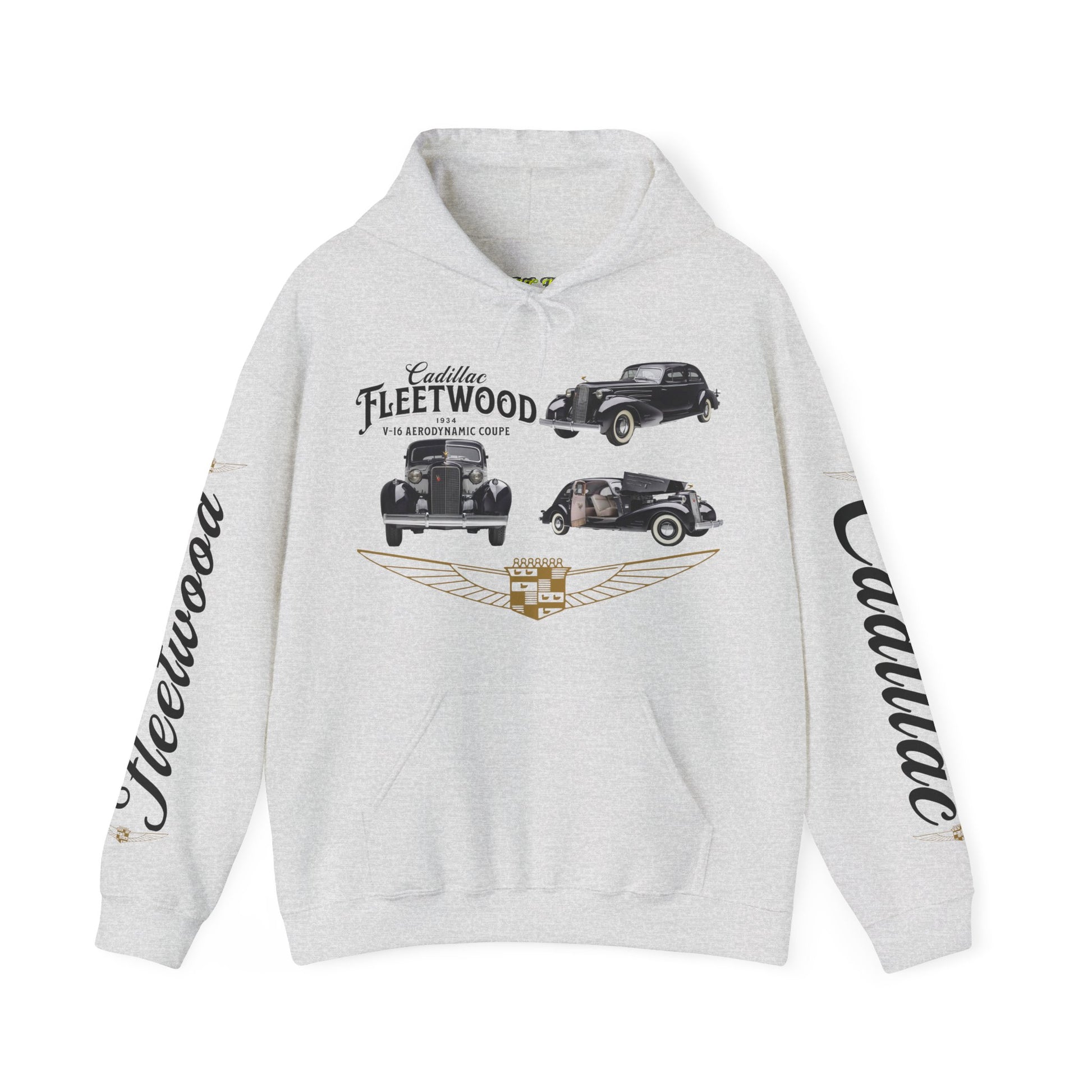 Featuring the iconic 1934 Cadillac Fleetwood a masterpiece of luxury, power, and vintage automotive excellence. The Fleetwood ’34 Hooded Sweatshirt is designed for those who appreciate classic car’s timeless style, bold aesthetics, with a passion for timeless craftsmanship. This heavy blend hooded sweatshirt is relaxation itself. Made with a thick blend of cotton and polyester, it feels plush, soft and warm, a perfect choice for any cold day. In the front, the spacious kangaroo pocket adds daily practicality while the hood's drawstring is the same color as the base sweater for extra style points.