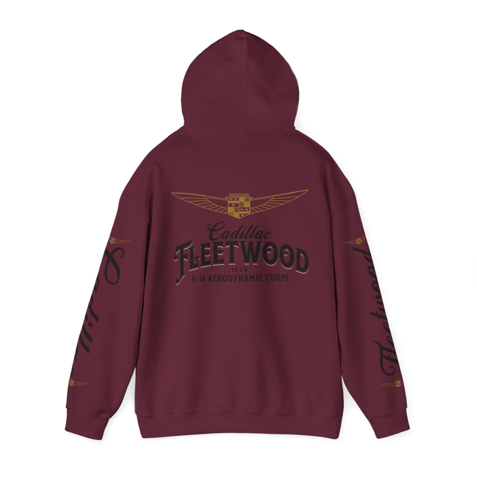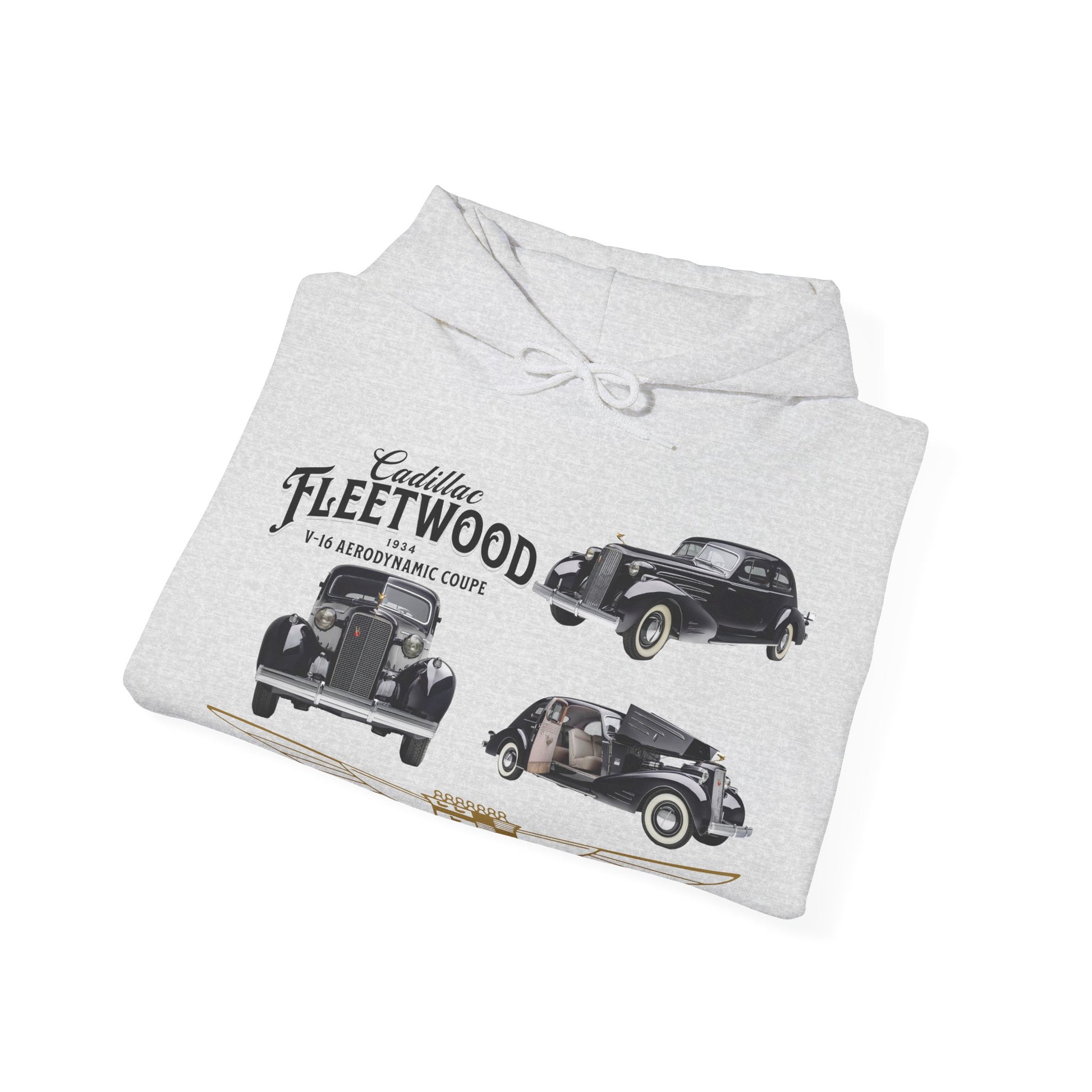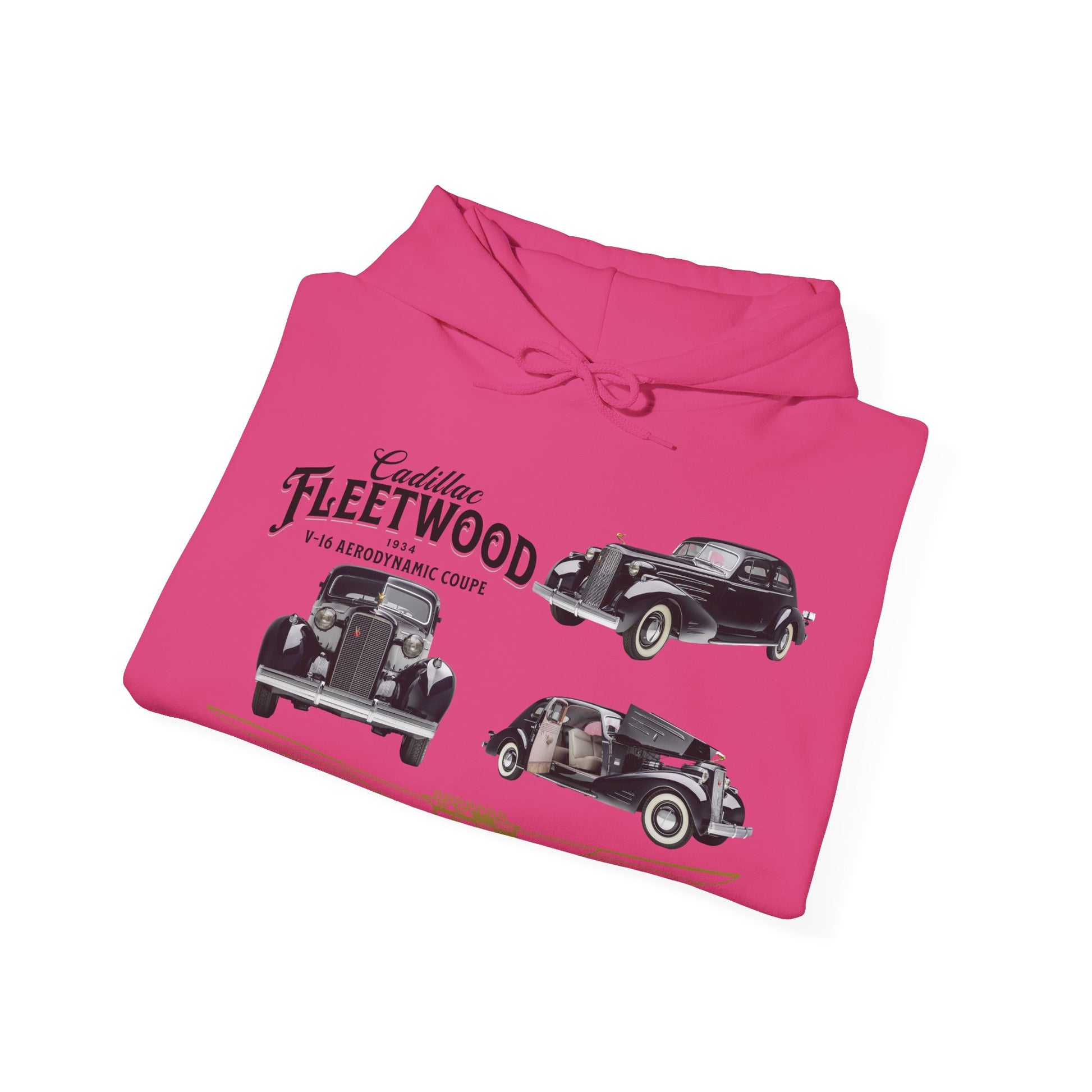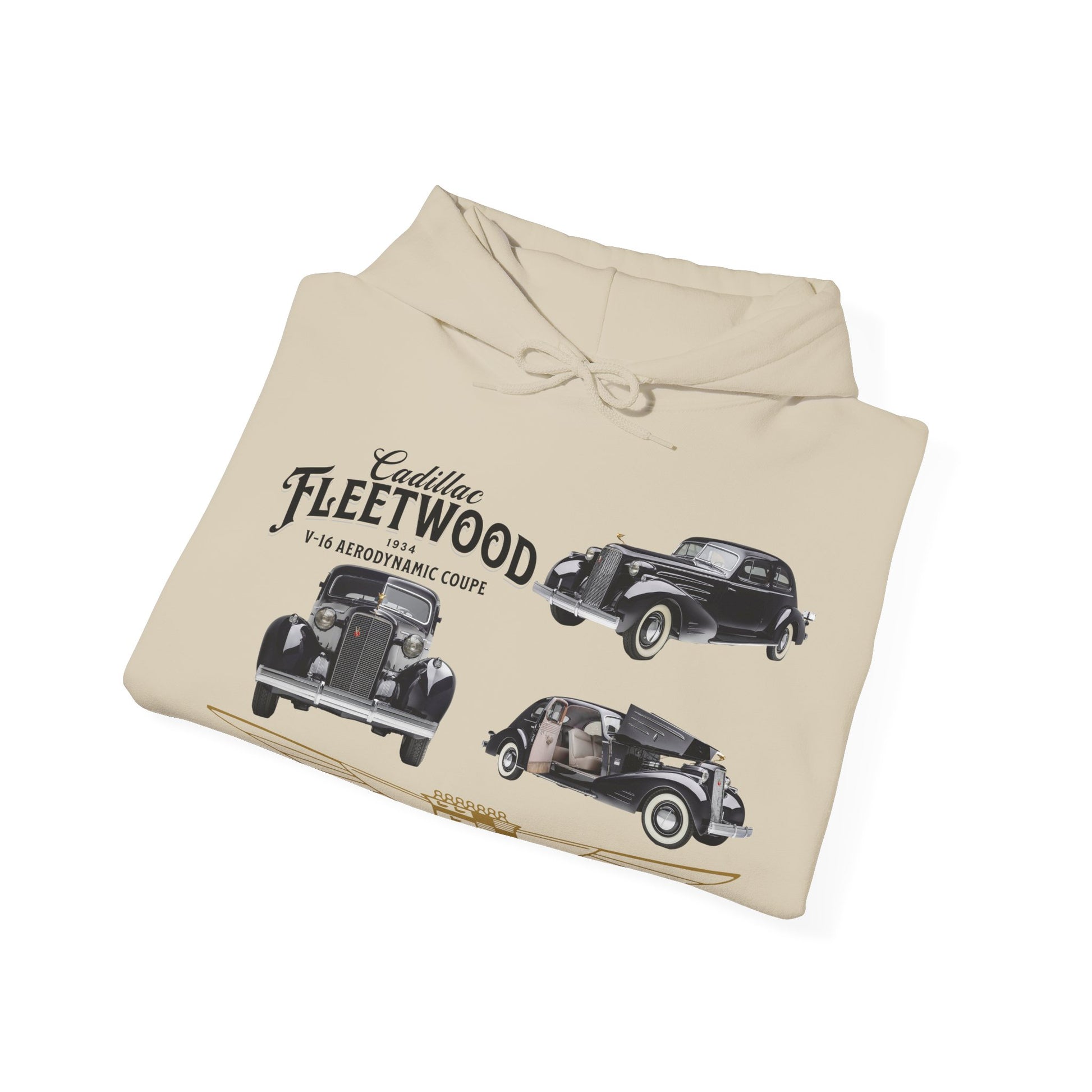 Featuring the iconic 1934 Cadillac Fleetwood a masterpiece of luxury, power, and vintage automotive excellence. The Fleetwood ’34 Hooded Sweatshirt is designed for those who appreciate classic car’s timeless style, bold aesthetics, with a passion for timeless craftsmanship. This heavy blend hooded sweatshirt is relaxation itself. Made with a thick blend of cotton and polyester, it feels plush, soft and warm, a perfect choice for any cold day. In the front, the spacious kangaroo pocket adds daily practicality while the hood's drawstring is the same color as the base sweater for extra style points.